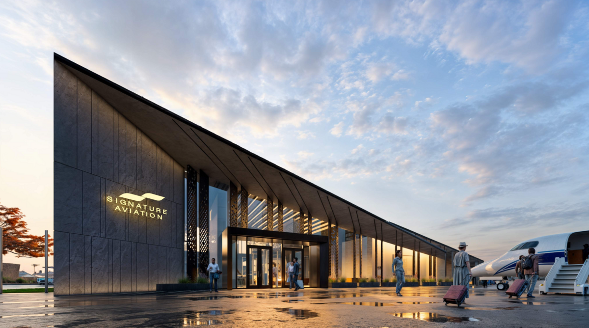 Commissioned by Signature Aviation, the Signature MDW FBO Terminal at Midway International Airport in Chicago, Illinois, represents a pinnacle of modern aviation design crafted by CHB Architects. This state-of-the-art facility redefines luxury travel by blending Chicago's iconic architectural heritage with contemporary sophistication, creating an exclusive gateway for Signature Airlines’ elite clientele.