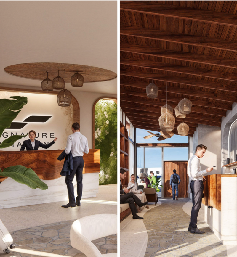 Designed to serve Signature Aviation’s elite clientele, each terminal blends cultural authenticity, sustainable innovation, and modern luxury, transforming travel into an immersive celebration of the Big Island’s diverse landscapes and heritage.
