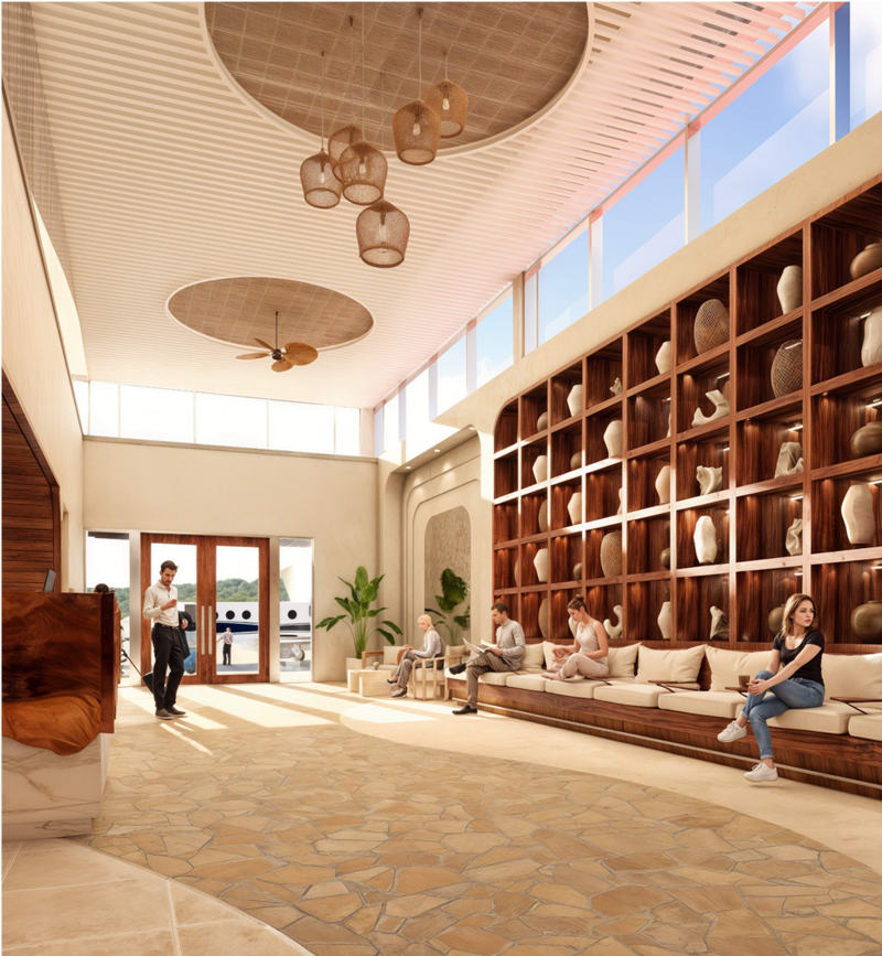 Functional Excellence The layout optimizes flow for high-net-worth travelers, with streamlined check-in areas, private concierge desks, and dedicated spaces for business meetings. The two-story design maximizes space, with the upper level offering exclusive VIP lounges and direct boarding access.