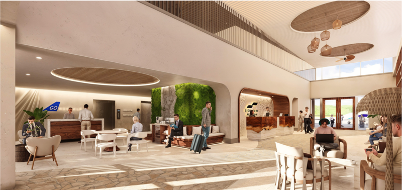 Refined Material Palette The terminal showcases a curated selection of materials, including polished koa wood paneling, volcanic basalt accents, and handwoven lauhala-inspired textiles. These elements create a warm, luxurious ambiance that reflects Oahu’s natural and cultural heritage while maintaining a sleek, modern aesthetic.